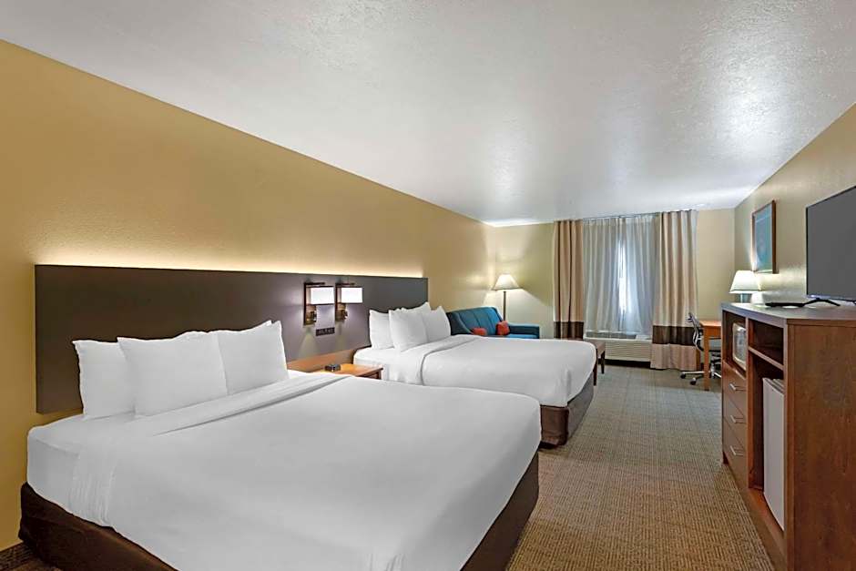 The Comfort Inn Richfield I-70 offers a variety of room types including Queen Rooms with two queen beds that are both accessible/non-smoking and pet-friendly/non-smoking, Standard Queen Rooms also with two queen beds, King Rooms that are accessible/non-smoking, Business King Rooms, Mini Suites, and additional King Rooms that are non-smoking. The room sizes are all 248 sqft except for the Mini Suite which is 301 sqft. Smoking is not allowed in any of the rooms. The rooms can accommodate 2-6 adults and 1-4 children depending on the room type.