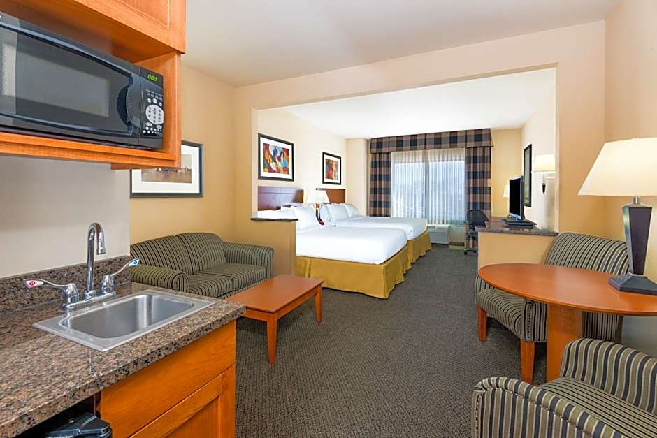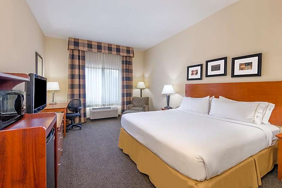 The Holiday Inn Express Hotel Vernal offers a variety of room types including Standard King Rooms with accessible tubs, Standard King Rooms with disability access, King Rooms, King Suites, Standard Queen Rooms with two Queen beds and communication accessibility, Standard Queen Rooms with two Queen beds and mobility accessible tubs, King Suites with accessible tubs, Queen Rooms with two Queen beds, Standard King Rooms with mobility accessible roll-in showers, and Standard Rooms with Double beds. Smoking is not allowed in any of these rooms. The occupancy ranges from 2 adults and 1 child to 4 adults and 3 children. Bed sizes vary from King to Queen. Some rooms have a room size of 355 sqft.