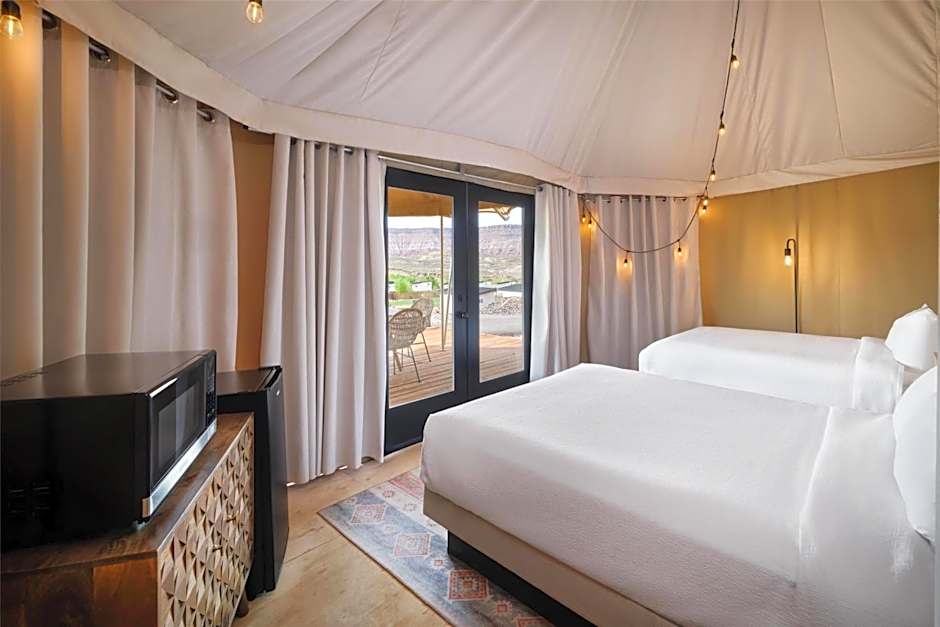 This air-conditioned tent has a private bathroom, a private entrance, a tea and coffee maker as well as a patio. The unit has 2 beds.
