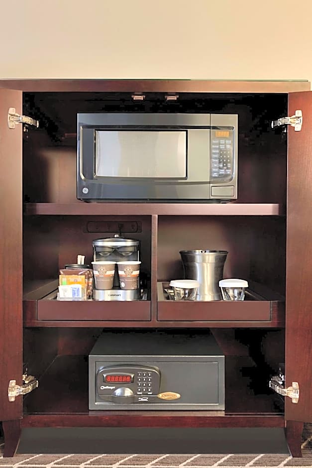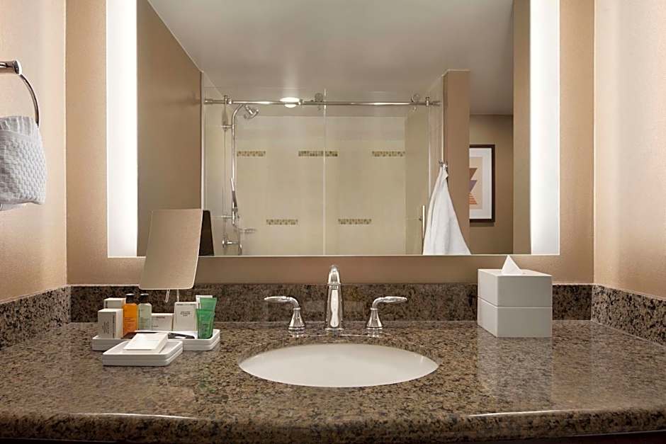 This mobility accessible executive level room features one king-sized bed and an accessible tub. Club Level guests enjoy key access to the Private Executive Lounge located inside our Dan & Brad's Restaurant on the Mezzanine Level. The Executive Lounge amenities includes breakfast service (Mon-Fri), afternoon snacks, beverages, evening hors d'oeuvres, and honor bar (Sun-Thu) plus free WiFi. This beautifully decorated room features maple woods furnishings, rich fabric, 32-inch HDTV programming, alarm clock radio with MP3 connection, chair with ottoman, workstation, two-line phone with voicemail, high-speed WiFi access, coffeemaker, iron/iron board, high-powered mount-free hairdryer, in-room safe and a mini-refrigerator. Any corresponding photo may not reflect the specific accessible room type or room feature.