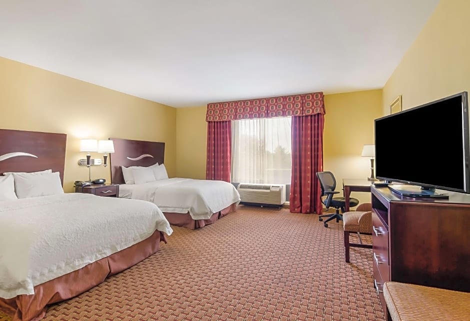 The Hampton Inn Galax offers a variety of room types including Family rooms, Double rooms, and Triple rooms. Smoking is not allowed in any of the rooms. The rooms accommodate different numbers of adults and children, with varying bed sizes. The Family rooms accommodate up to 5 adults and 4 children, with a choice of 1 King bed and a sofa bed or 2 Queen beds. The Double room accommodates 2 adults and 1 child with a King bed, and the Triple room accommodates 3 adults and 2 children with a King bed.