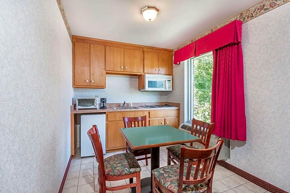 The air-conditioned suite features 1 bedroom and 1 bathroom with a bath and a shower. The kitchen is equipped with a refrigerator, kitchenware and a microwave. The suite has carpeted floors, a seating area with a flat-screen TV with cable channels, a tea and coffee maker, a dining area, as well as heating. The unit offers 1 bed.