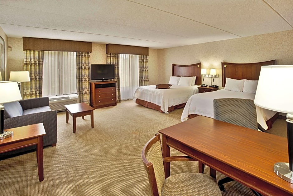 The Hampton Inn & Suites Richmond/Virginia Center offers a variety of room types including King Rooms, Queen Rooms with Two Queen Beds, King Studios, and Suites. All rooms are non-smoking and range in size from 291 sqft to 452 sqft. The accommodations can accommodate between 3-7 adults and 2-4 children depending on the room type.