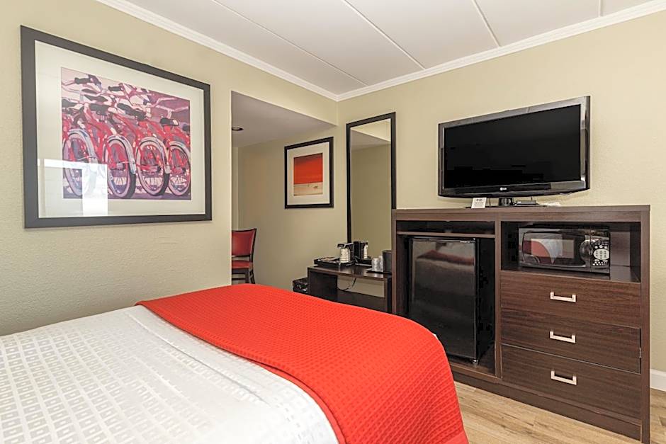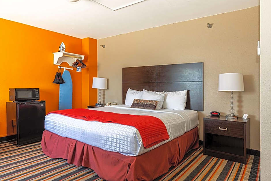 This king room nonsmoking rooftop (no private balcony), features a flat-screen TV, microwave, refrigerator and air-conditioning.