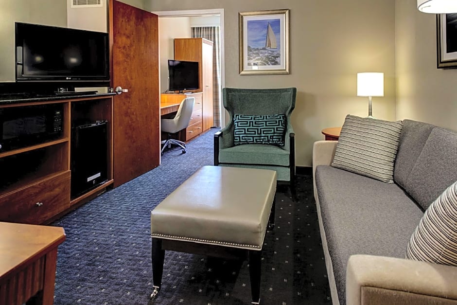 This suite features a flat-screen TV along with a microwave, refrigerator, and a seating area.
