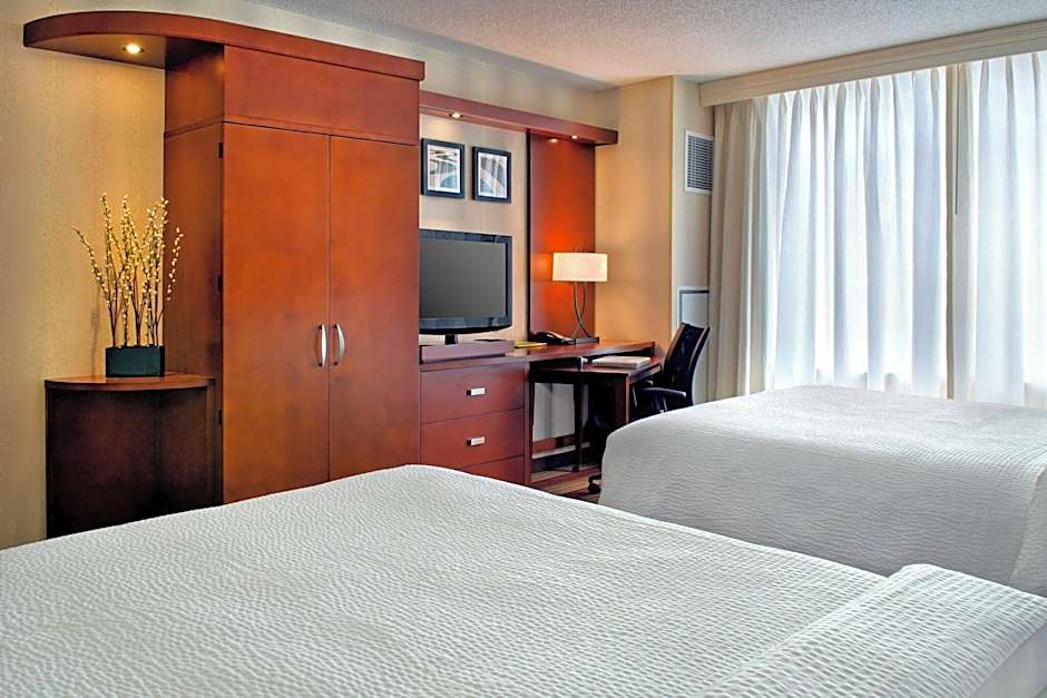 The Courtyard by Marriott Washington, D.C./Foggy Bottom offers a variety of room types. The available rooms include Queen Rooms with Two Queen Beds, King Rooms with Sofa Beds, and King Rooms with City View. Smoking is not allowed in any of the rooms. The room sizes range from 248 to 398 sqft. Occupancy ranges from 3 to 4 adults, with additional space for children.