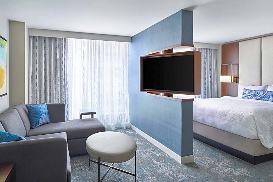 The Residence Inn by Marriott Washington Downtown/Convention Center offers various room types including Studios and One Bedroom Suites. The Studios are available with a King bed and a sofa or with two Queen beds and a sofa. The One Bedroom Suites also come with either a King bed and a sofa or two Queen beds and a sofa. All rooms have a size ranging from 474 to 603 sqft and do not allow smoking. The occupancy ranges from 3 adults and 2 children to 5 adults and 4 children.