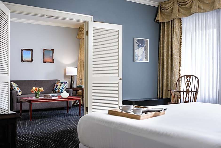 Elegantly furnished, this spacious suite features separate sleeping and living areas. A sofa bed, TV, and complimentary WiFi are featured in the living room.