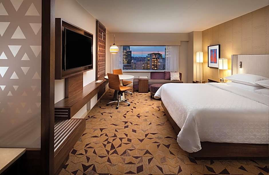Rooms at the Sheraton Grand Seattle are well-appointed and feature all the comforts of home. Enjoy stunning views of the city from your private balcony and unwind in the bathtub with complimentary toiletries. Stay connected with high-speed wifi, and take advantage of room service for a convenient dining experience.
