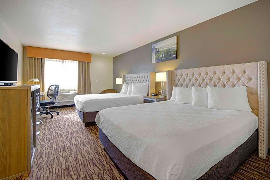 When it comes to the room types available at the Best Western PLUS Peppertree Airport Inn, you'll have several options to choose from. If you require accessibility features, you'll find a King Room with Roll-In Shower - Mobility Access/Non-Smoking available. For those traveling in groups or with larger families, the Queen Room with Two Queen Beds and Walk-In Shower - Mobility Access/Non-Smoking is a great choice. And if you're simply looking for a comfortable and spacious room, you won't be disappointed with the King Room or the Queen Room with Two Queen Beds. All rooms are equipped with modern amenities, including air conditioning and a private bathroom with free toiletries, ensuring a pleasant and relaxing stay for all guests.
