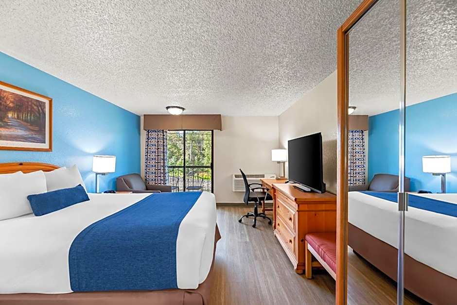 The Baymont by Wyndham Yakima Riverfront hotel offers a variety of rooms including Queen Rooms and Queen Studio Suites with river views, as well as King Rooms with river views that have mobility access. All rooms are non-smoking and can accommodate 2 adults and 1 child. The bed sizes range from Queen to King.