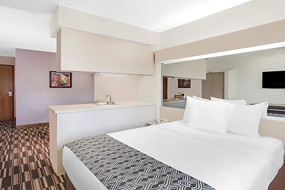 This queen room suite includes a flat-screen TV and coffee maker, microwave and refrigerator. A hair dryer and free WiFi are also featured. This room offers disability access with bathtub and safety bar.