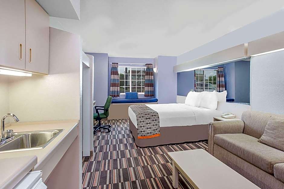 This queen studio suite features a microwave, refrigerator, hair dryer and free WiFi. A flat-screen TV and a sofa bed are also provided.