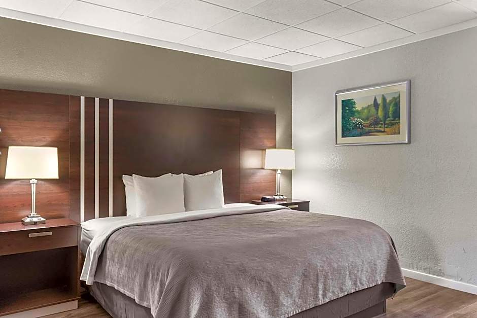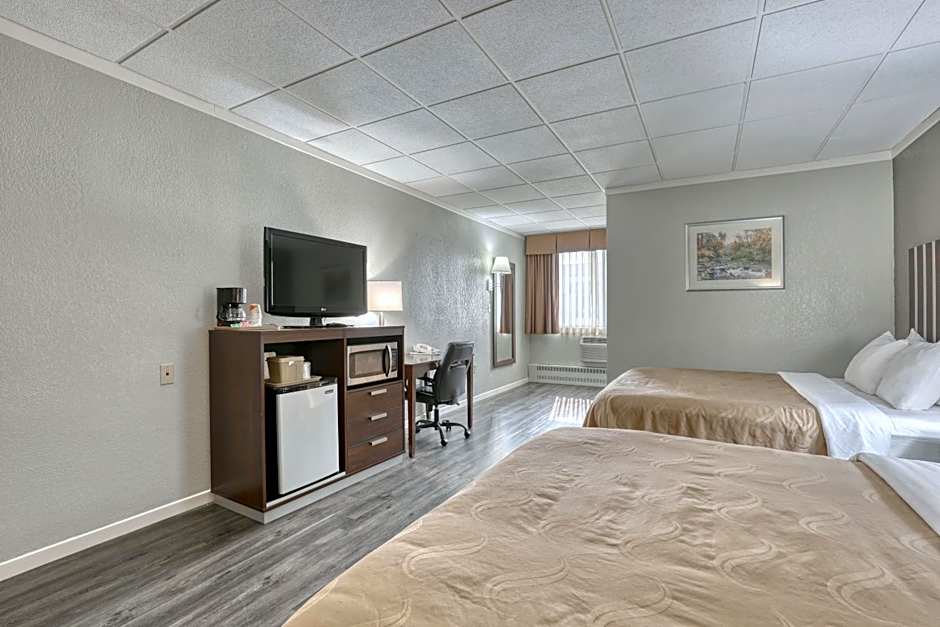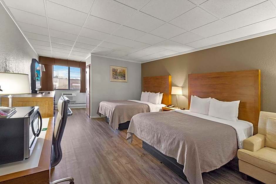 The Quality Inn & Suites Downtown offers a variety of room types including Standard Queen Rooms with Two Queen Beds, Queen Rooms with Two Queen Beds and Atrium View, Superior Efficiency Queen Rooms, Queen Rooms with Two Queen Beds (pet-friendly), Queen Rooms with Sofa, King Rooms, and King Suites. All rooms are non-smoking and range in occupancy from 2 to 4 adults, with additional accommodations for children. The bed sizes are either Queen or King, and the room sizes range from 237 to 291 square feet.