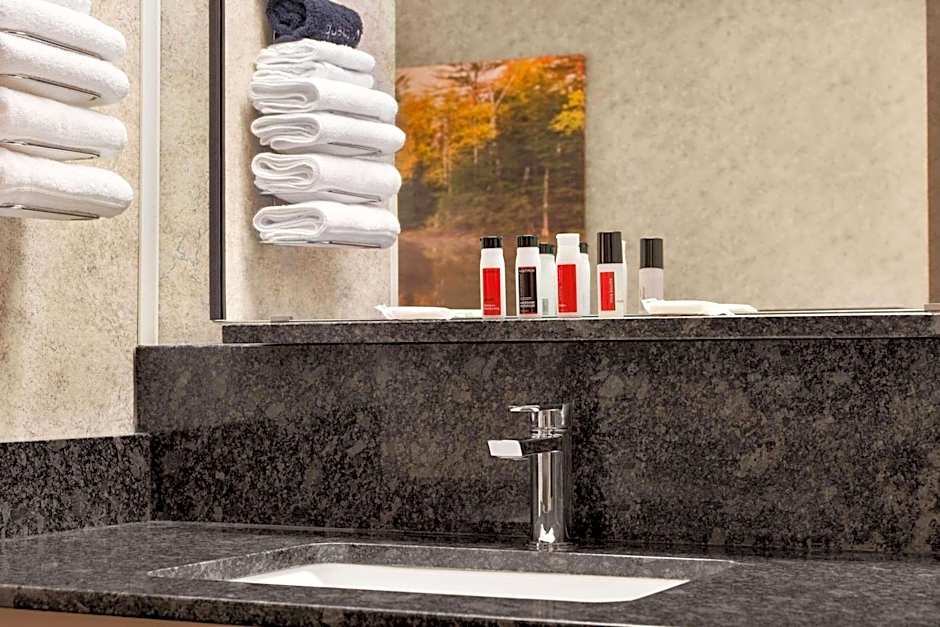 This accessible room features a roll-in shower, hearing accessible TV and fully equipped kitchenette.