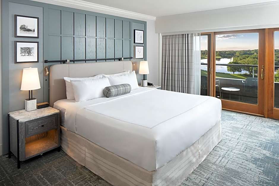 Room offers panoramic views of the resort's lake and golf courses.