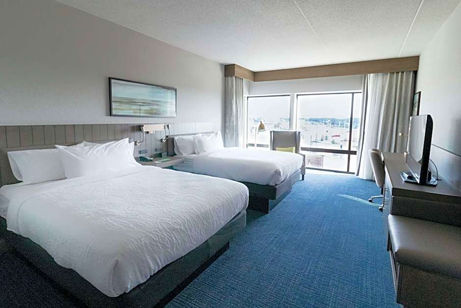 The Hilton Garden Inn Madison Sun Prairie offers a variety of room types including Deluxe Queen Rooms, Junior Suites, Queen Rooms with Two Queen Beds, Deluxe Queen Rooms with a balcony, King Rooms, and Deluxe King Rooms. All rooms are non-smoking and have a room size of 301 sqft. Accommodations range from double occupancy for King Rooms to quadruple occupancy for Deluxe Queen Rooms and Deluxe King Rooms. The bed sizes vary between Queen size beds and King size beds.