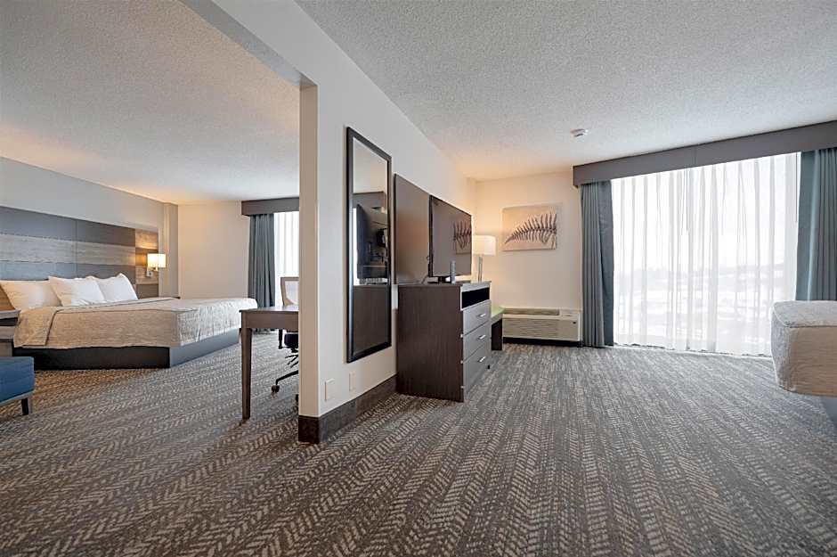 Suite-1 King Bed Non-Smoking Separate Bedroom Sofabed Kitchenette Sauna Walk In Shower Full Breakfa is 484 square feet and includes either a single bed 80-130 width or a king-size bed 150-183 width plus a sofa bed and is Wheelchair-accessible.