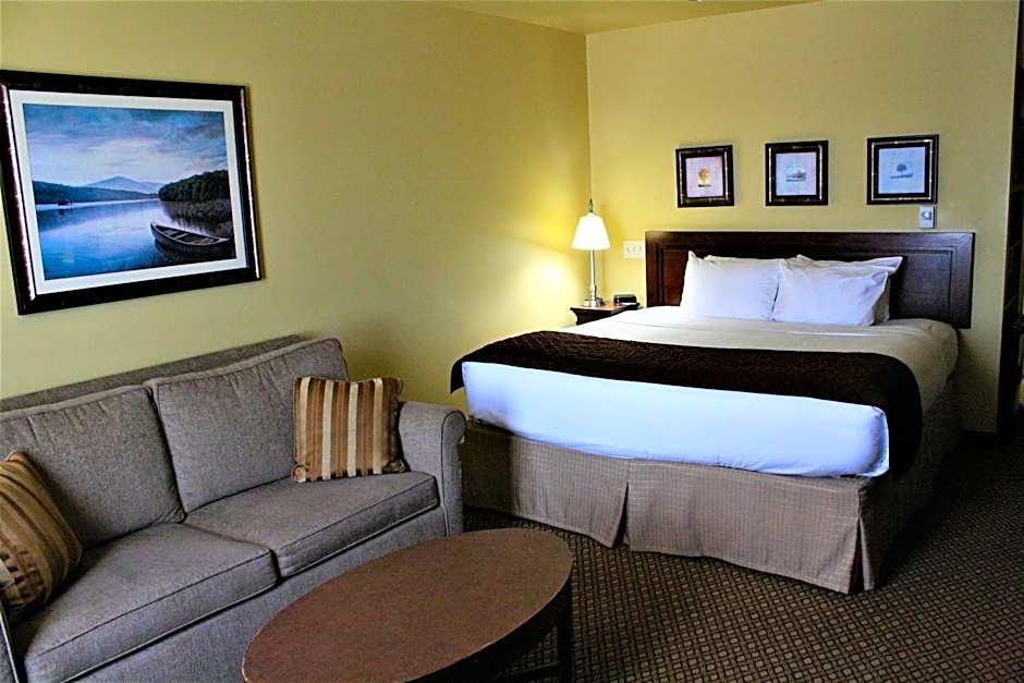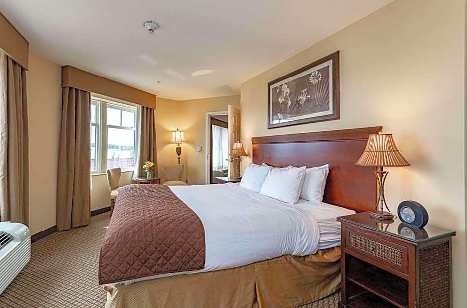 The hot tub and fireplace are the special features of this suite. The spacious suite has 1 bedroom and 1 bathroom with a shower and free toiletries. The kitchenette features a refrigerator, a microwave and a tea and coffee maker. This wheelchair accessible suite features air conditioning, a seating area with a flat-screen TV and a toilet with grab rails. The unit has 1 bed.