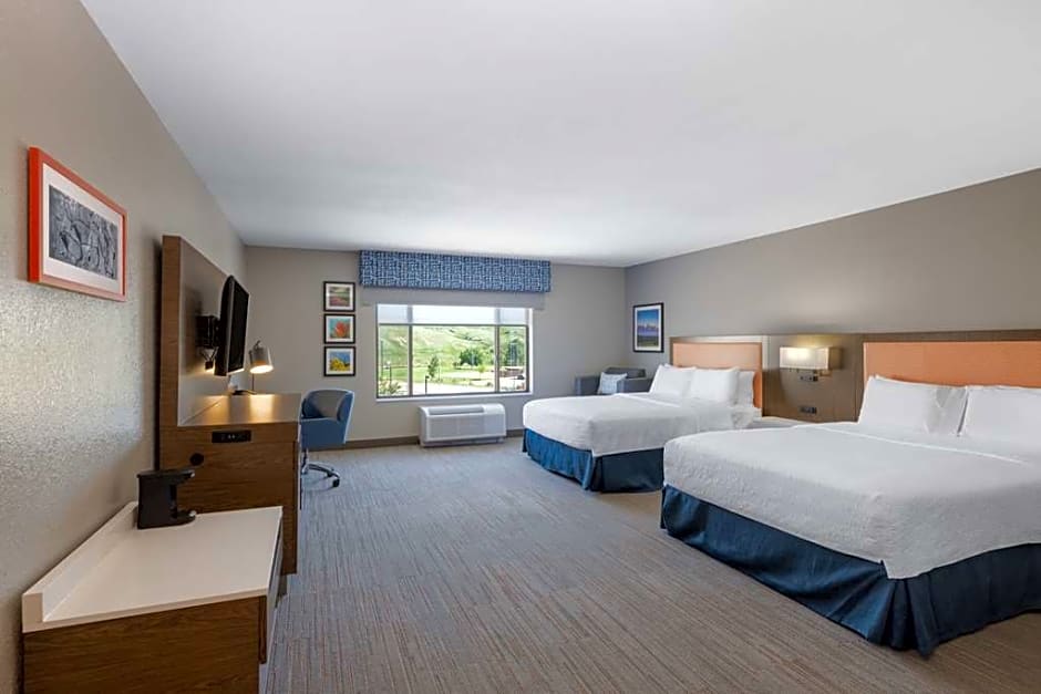 The Hampton Inn & Suites Casper offers a King Studio with Sofa Bed room accommodating up to 5 adults and 4 children with a king size bed. There is also a Quadruple Double Room with Two Double Beds - Hearing Accessible accommodating up to 4 adults and 3 children with two double beds. Additionally, they offer a Triple King Room with a king size bed accommodating up to 3 adults and 2 children. Lastly, they have a Quadruple Queen Room with Two Queen Beds accommodating up to 4 adults and 3 children with two queen size beds. All rooms are non-smoking.