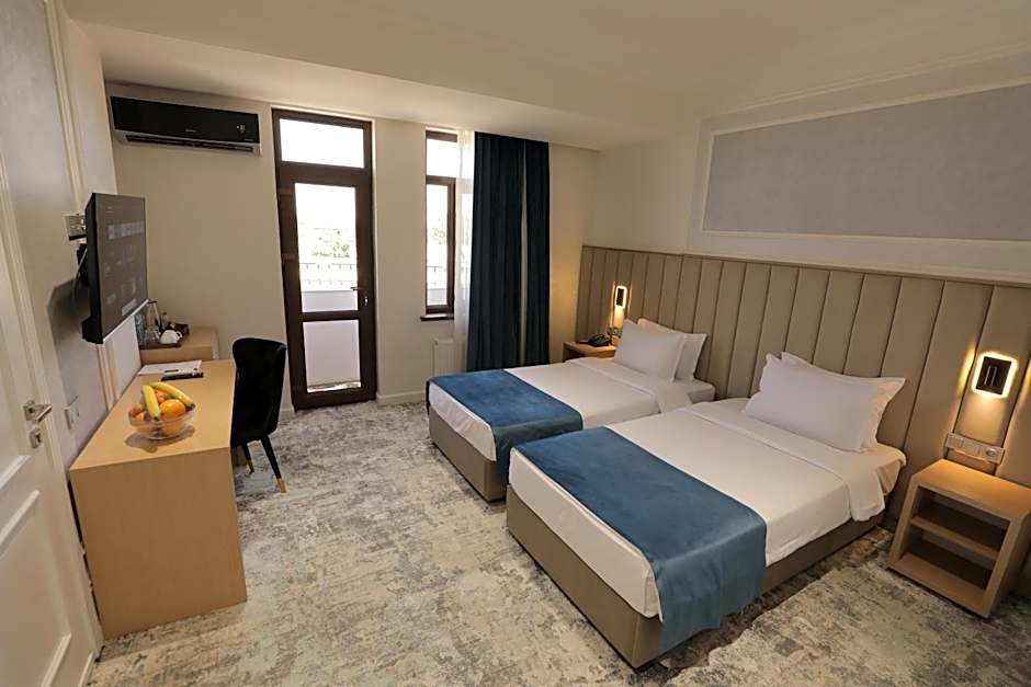 This air-conditioned twin room is consisted of of a flat-screen TV with satellite channels, a private bathroom as well as a balcony with city views. The unit has 2 beds.