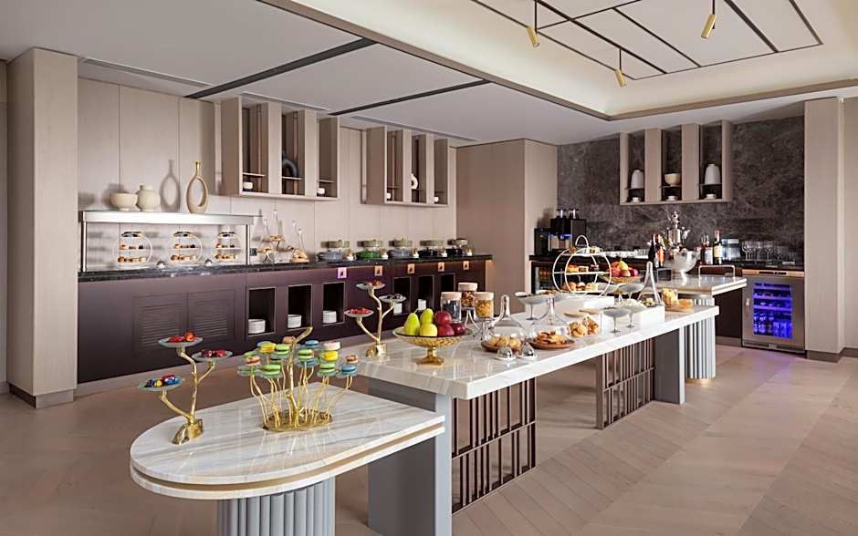 The InterContinental Tashkent offers four on-site dining options. No'Mad features traditional ambiances and serves Greek, Mediterranean, Ukrainian, local, and international cuisines. Ember provides a modern and romantic atmosphere and offers steakhouse, sushi, Asian, and grill BBQ options. Additionally, Pure Pool Bar offers a family-friendly setting and international cuisines, while the InterContinental Club Lounge offers a modern atmosphere with a range of international cuisine.