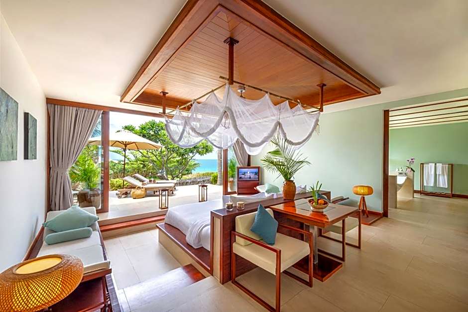 Two king-size bedrooms with private bathroom and shower and two twin bedrooms with en-suite shower, spacious indoor and outdoor living, lounging, and pavilion dining areas with kitchenette, and a sundeck with large private pool overlooking the beach. "Breakfast anytime, anywhere" meaning you can have breakfast anywhere – by the pool, in the spa, on the beach – whenever you want. Buffet time 06.30am – 10.00am. After 10.00am – order from a la carte breakfast menu, last order by 09.30pm.