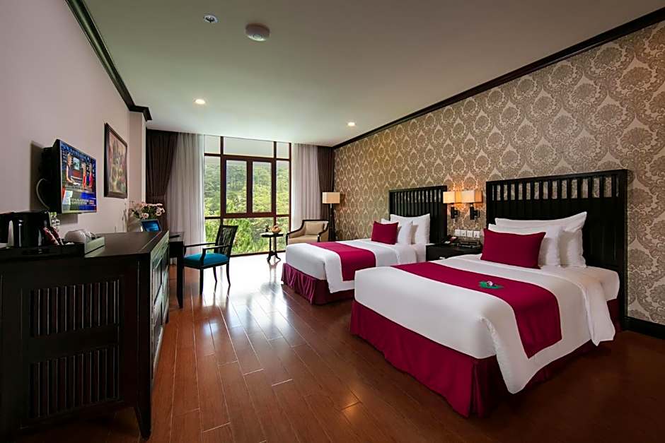 At the Swiss-Belresort Tuyen Lam, one type of room available is the Deluxe Twin Mountain View. This room features two twin beds and has a size of 377 sqft. Smoking is not allowed in this room. It can accommodate 2 adults and 2 children.