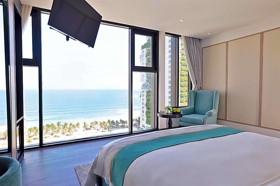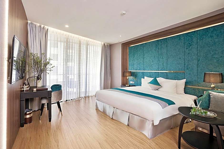 Experience a heightened sense of tranquility at the Premium Deluxe Partial Ocean View, this spacious room spanning up to 40 sq m (430 sq ft), features a balcony or non-balcony with a partial ocean view, providing you with ample space to embrace the refreshing breeze of Danang and the bathroom is adorned with exquisite marble stones.