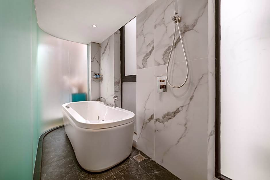 This spacious suite is consisted of of 1 living room, 1 separate bedroom and 1 bathroom with a walk-in shower and free toiletries. The air-conditioned suite offers a flat-screen TV with cable channels, soundproof walls, a mini-bar, a seating area as well as city views. The unit offers 3 beds.