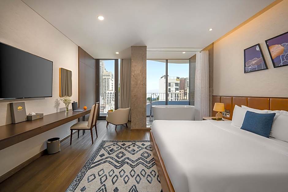 Nestled in Da Nang’s My An area within the Son Tra District, this property pairs a signature panoramic rooftop bar with daily afternoon tea, offering a stylish base for both beachside relaxation and city exploring. With on-site parking (free), a bar, elevator access, non-smoking rooms, and spa options, every day unfolds with comfort and a touch of leisure.