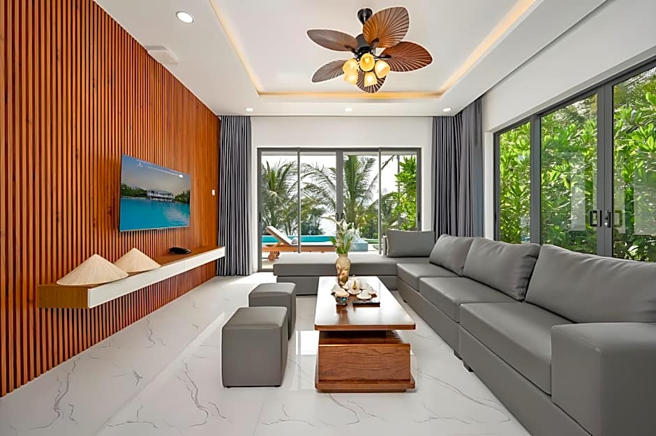 Featuring a private entrance, this air-conditioned villa consists of 1 living room, 1 separate bedroom and 1 bathroom with a bath and a shower. Boasting a terrace with sea views, this villa also provides soundproof walls and a flat-screen TV with cable channels. The unit offers 2 beds.