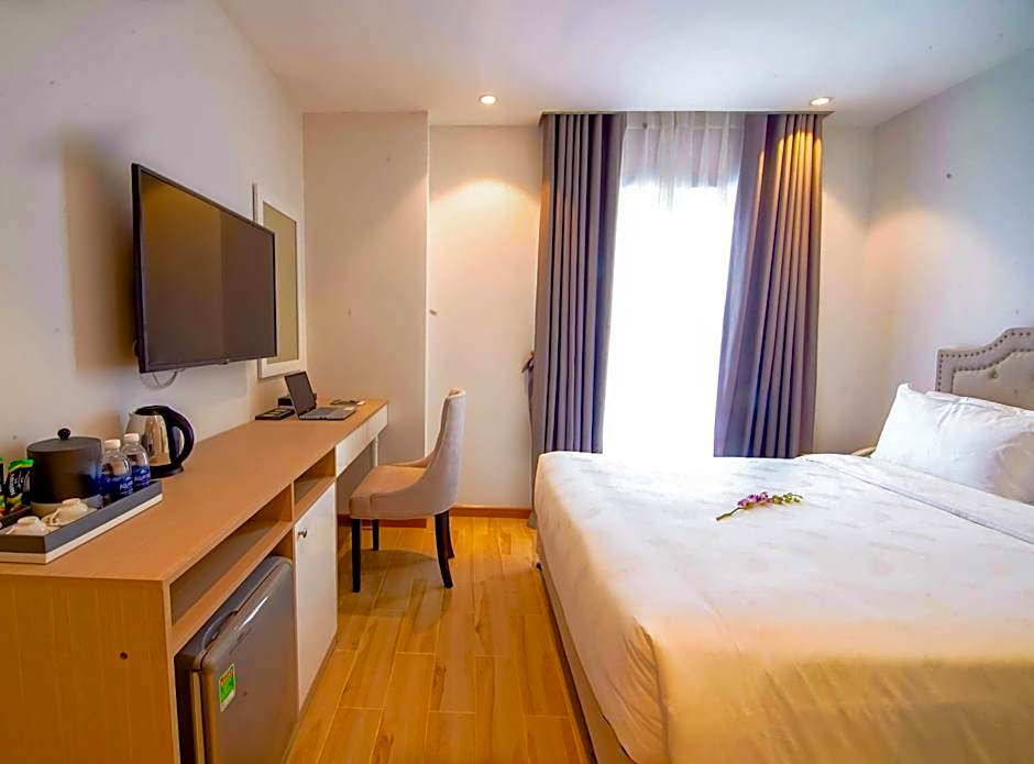 Nestled in Da Nang’s My An Ward, the hotel pairs scenic views—river, garden, and landmark—with practical touches. A private entrance and a terrace invite guests to settle in, while soundproof rooms offer a quiet retreat. Elevator access helps reach upper floors, and extra-long beds provide an extra touch of comfort after a day of exploring the coast.