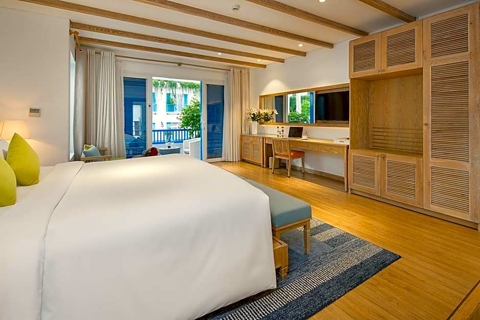 King Junior Suite with Terrace or Pool view : This spacious junior suite comes with a terrace or main pool view. Our Junior Suites are thoughtfully located around the main pool area, offering you a complete and serene getaway. You can enjoy peaceful pool or garden views, providing a tranquil and comfortable escape from the bustling city.