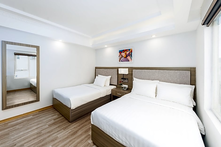 Featuring free toiletries and bathrobes, this triple room includes a private bathroom with a walk-in shower, a hairdryer and slippers. The air-conditioned triple room features a flat-screen TV with cable channels, soundproof walls, a tea and coffee maker, a seating area as well as city views. The unit has 2 beds.