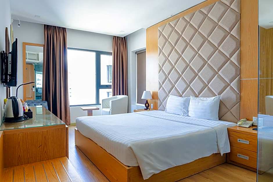 is a stylish 4-star retreat in Da Nang, tucked into Phuoc My near the coast. Just from Da Nang’s city center, the setting blends easy access with seaside charm. The rooftop pool, adults-only and offering sweeping views, is a perfect spot for a sunset dip after a day of exploring. Free private parking and complimentary wifi keep travel simple, while air conditioning and soundproofed rooms ensure comfort, and a 24-hour front desk is ready to help with plans or questions. Non-smoking rooms add to the relaxed vibe, and beach essentials like free umbrellas and loungers are handy for days by the shore.