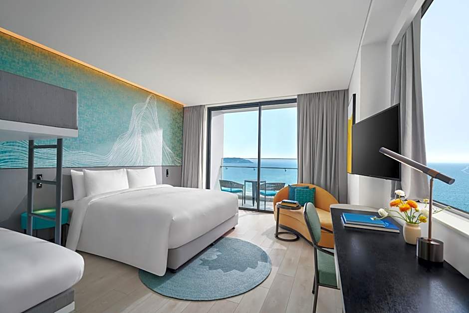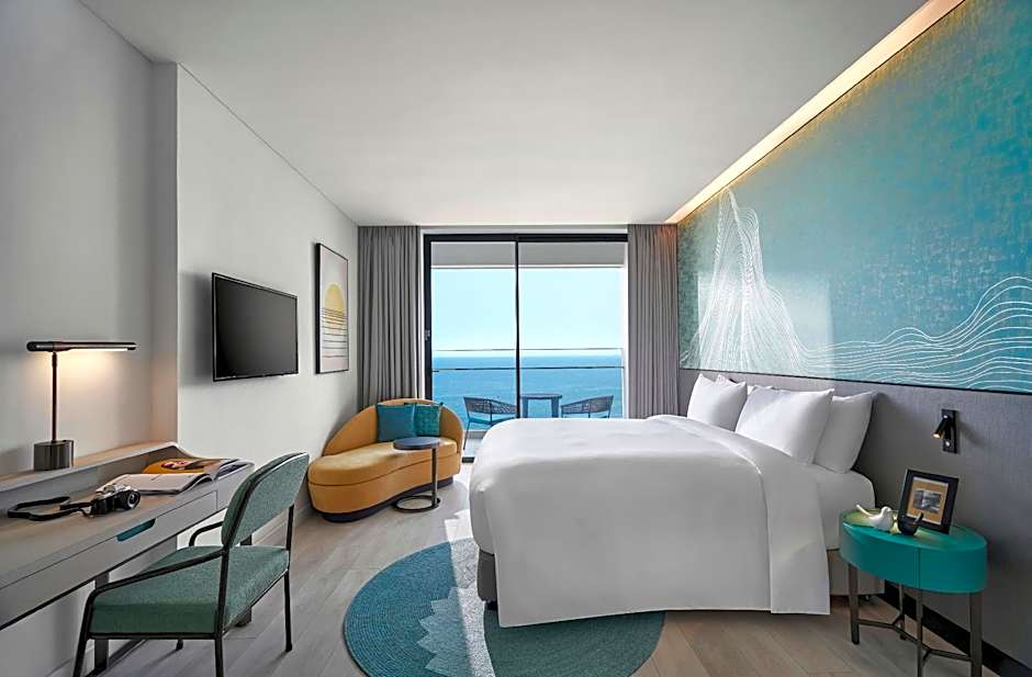 The spacious suite offers air conditioning, soundproof walls, a balcony with sea views as well as a private bathroom boasting a walk-in shower. The unit has 1 bed.