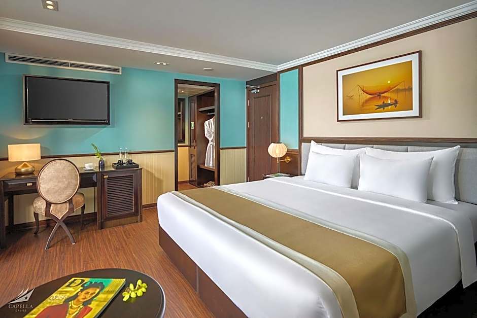 Welcome aboard the Halong CAPELLACRUISE - Member of Lyra cruise collection, an enchanting floating hotel located at Tuan Chau Harbor, just 6,1mi from the heart of Hạ Long, Vietnam! With prices beginning at an irresistible level, this is the ultimate getaway for those looking to immerse themselves in the stunning beauty of Ha Long Bay while indulging in comfort and extravagance. Imagine waking up to gentle waves lapping against the cruise, with the golden sun rising on the horizon, ready to set your adventuring spirit free!