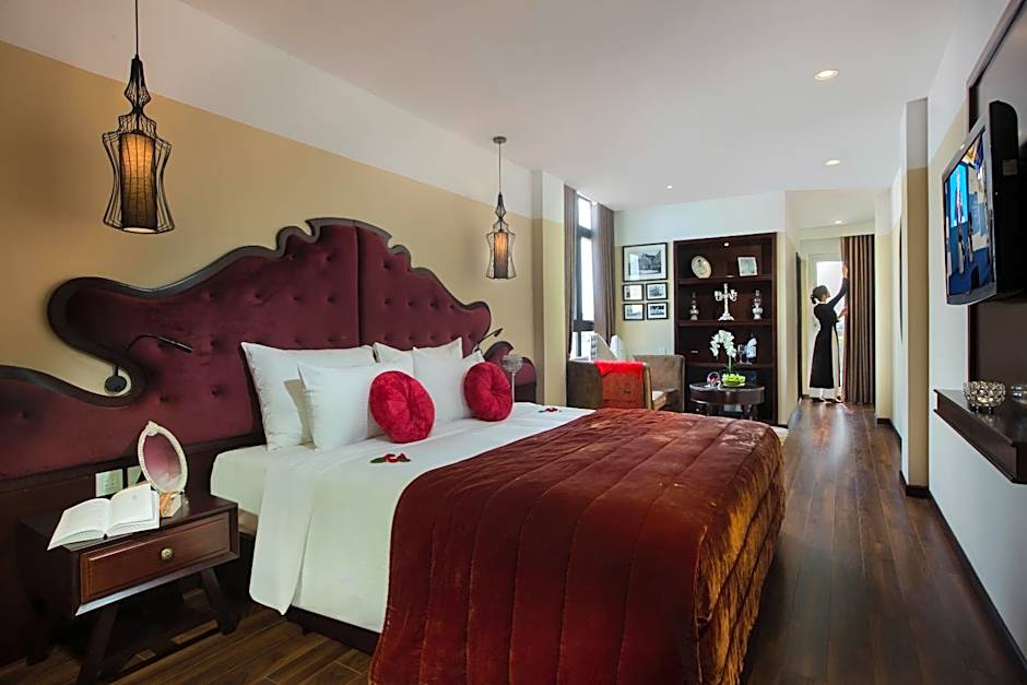 This higher floor room has a large balcony with views of Hanoi Old Quarter.