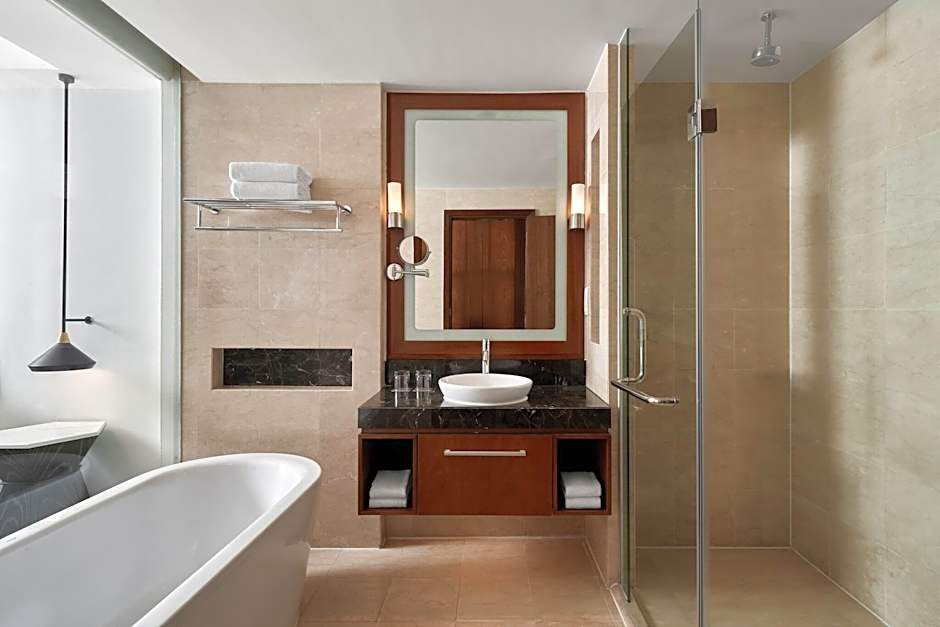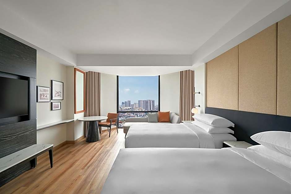 The spacious double room provides air conditioning, executive lounge access, as well as a private bathroom featuring a bath and a shower. This double room features an electric kettle, parquet floors, a flat-screen TV and city views. The unit offers 1 bed.