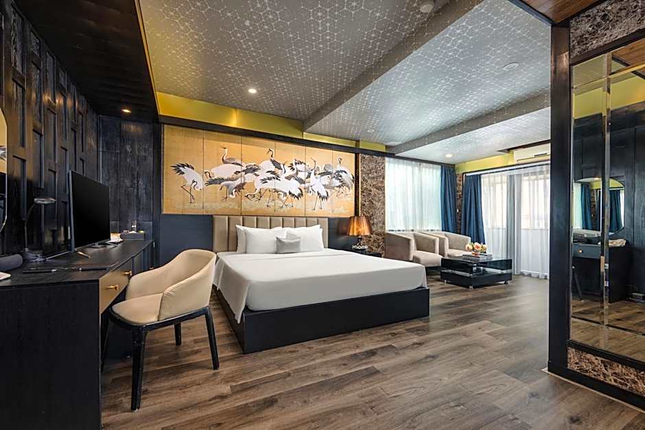 This suite features a hot tub. The air-conditioned suite has 1 bedroom and 1 bathroom with a bath and a shower. The suite offers a flat-screen TV with cable channels, a wardrobe, a safe deposit box, an electric kettle as well as city views. The unit has 1 bed.
