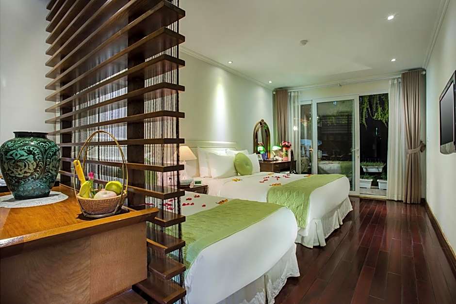 Located on the top floors, these spacious and luxuriously beautiful suites come with views of the Old Quarter. They are fully-equipped with a flat-screen TV, a laptop and a mini-bar. The stylish private bathroom has either a bathtub or standing shower. Select suites include a private balcony and separate seating area.