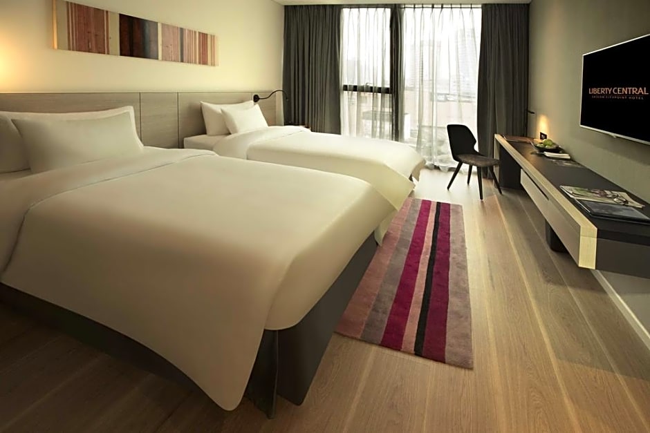 At the Liberty Central Saigon Citypoint hotel, there are various types of rooms available. The Deluxe Double or Twin Room, Premier Double or Twin Room, and Executive Double or Twin Room are all TwinDouble rooms that can accommodate 2 adults and 1 child. These rooms have a room size of either 237 sqft or 258 sqft and do not allow smoking. The Signature Double or Twin Room with City View is a Suite room with a larger size of 291 sqft and also does not allow smoking.