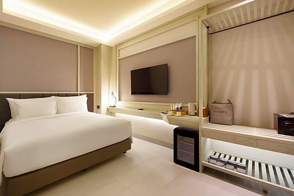 With no window, this double room is air-conditioned and has a flat-screen TV, a mini-bar, a wardrobe, and a safe deposit box. The unit has 1 bed.