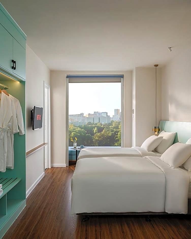 Featuring free toiletries and bathrobes, this twin room includes a private bathroom with a walk-in shower, a hairdryer and slippers. The air-conditioned twin room features a flat-screen TV with streaming services, soundproof walls, a seating area, a wardrobe as well as city views. The unit has 2 beds.