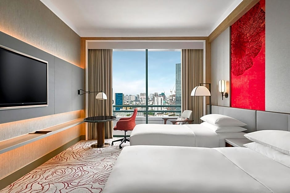 Providing free toiletries and bathrobes, this twin room includes a private bathroom with a bath, a shower and a hairdryer. The spacious air-conditioned twin room provides a flat-screen TV with cable channels, a mini-bar, executive lounge access, a wardrobe as well as city views. The unit offers 2 beds.