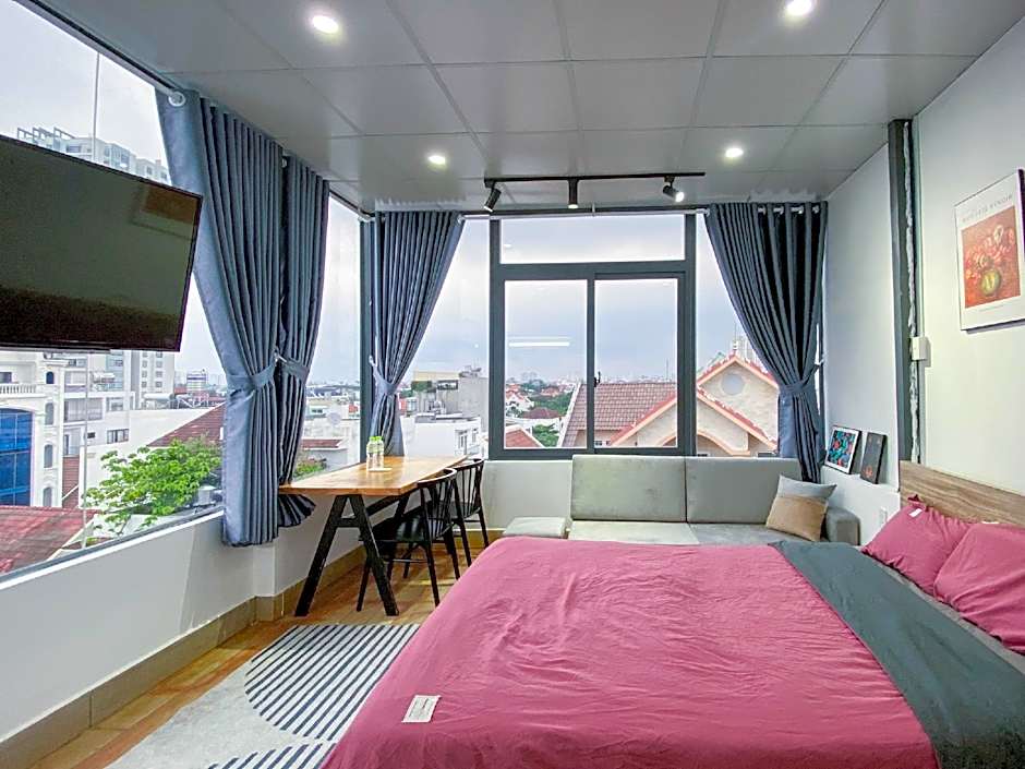 The studio provides air conditioning, a seating area, as well as a private bathroom featuring a shower and slippers. The kitchen is equipped with a refrigerator, kitchenware and a microwave. This studio features a wardrobe, a sofa, a flat-screen TV and city views. The unit offers 1 bed.