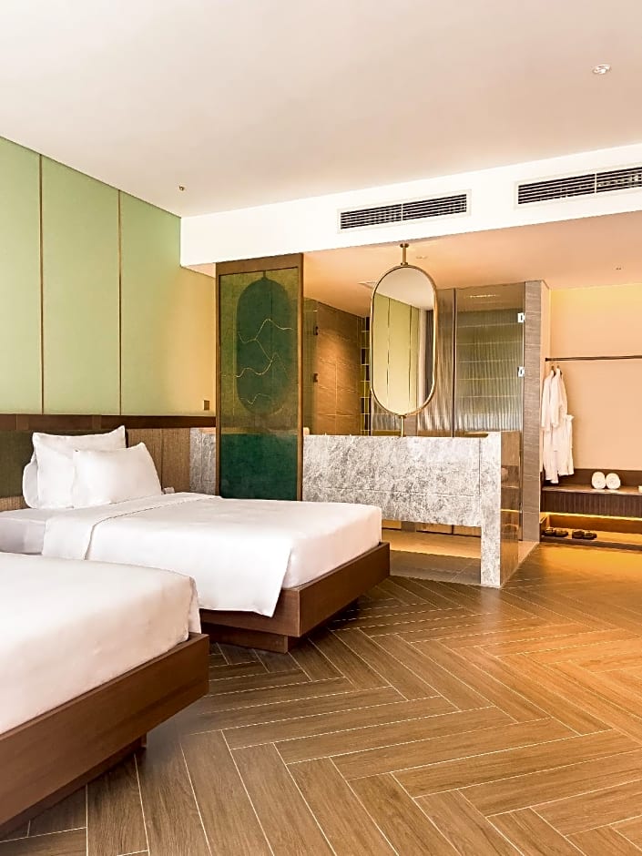 The spacious twin room offers air conditioning, a mini-bar, a balcony with pool views as well as a private bathroom featuring a walk-in shower. The unit offers 2 beds.