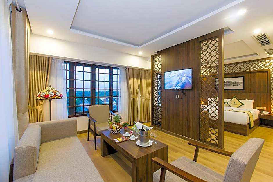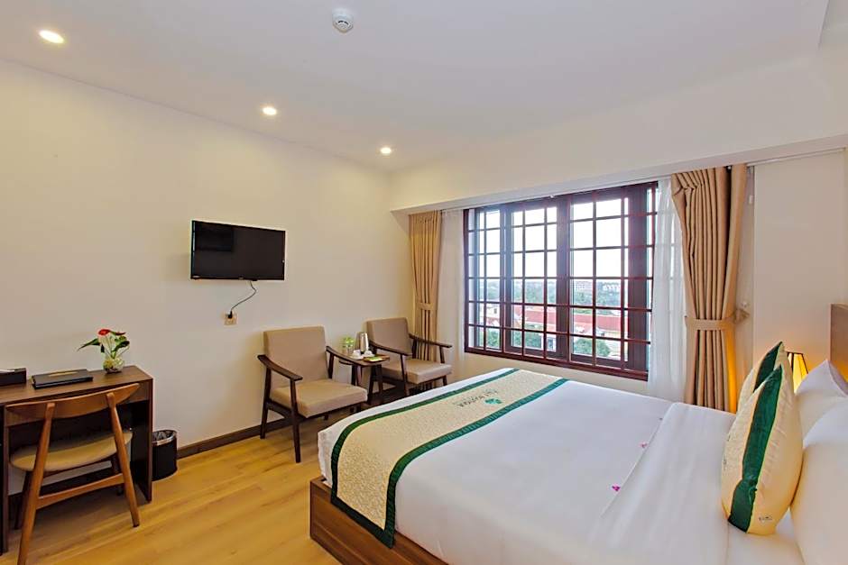 Air-condiitoned room offers a private balcony that opens out to stunning views of the ocean, Cham Island, Hai Van Pass and Linh Ung Pagoda. Large room also comes with large windows, an LCD TV, personal safe, mini-bar and kettle. Attached bathroom has either a bathtub or shower.