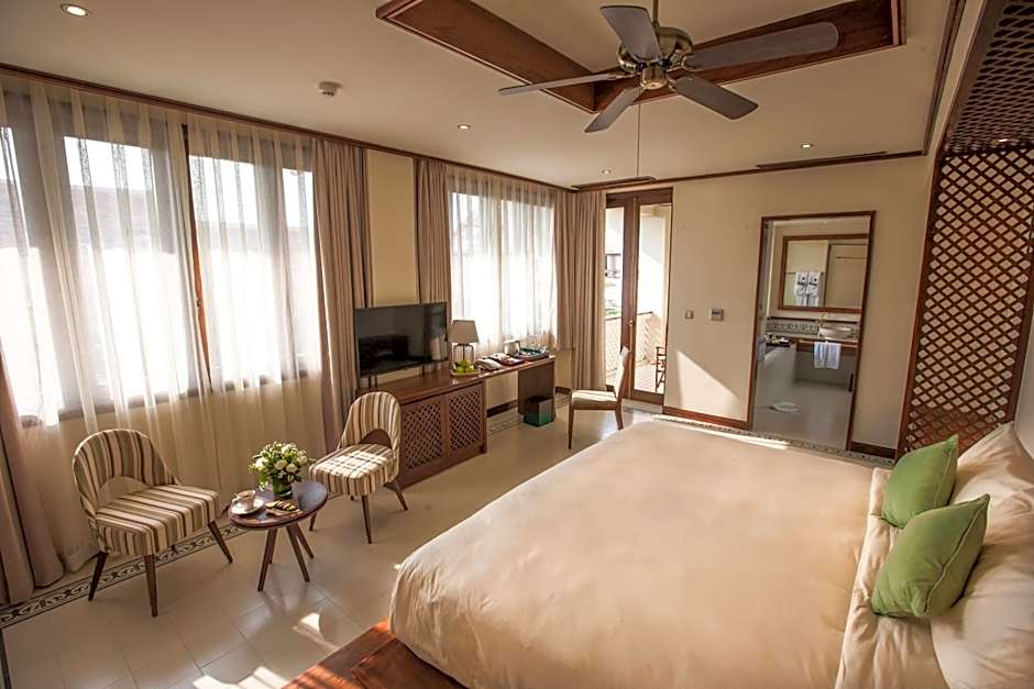 The Almanity Hoi An Resort & Spa offers a variety of room types. They include Executive Suite King/Twin, Deluxe Town Double/Twin, Loft Room Double/Twin, Superior Town Double/Twin, Junior Suite, Presidential Suite, and Rooftop Jacuzzi Suite. All rooms are non-smoking and accommodate 2 adults with varying bed sizes and room sizes.